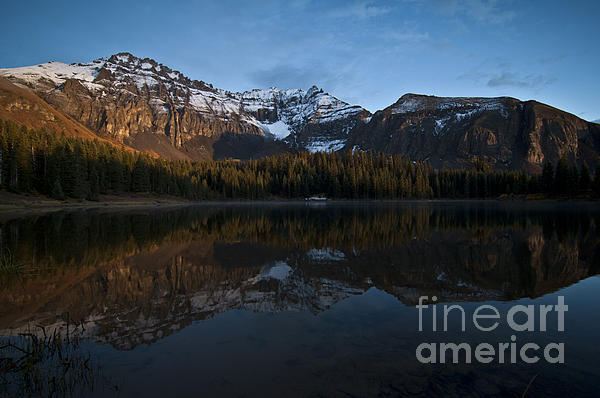 The sun sets on the mountains near Telluride. The calm Alta Lakes reflect clearly the new fallen snow on the mountains. I spent at least an hour in the rain, waiting, and hoping that the rains would stop and the sun would come out. In the mountains, the weather changes so fast... glad I waited